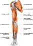 | Brachioradialis | Humerus and septum | Radius | Flexes and rotates the elbow. | Arm- front view of human arm![]() |