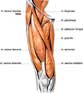 | Brachialis | Humerus and septa | Coronoid process and ulna | Flexes elbow. | Arm- front view of human arm![]() |