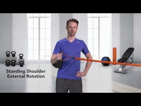 The infraspinatus muscle, which is a crucial rotator cuff muscle, is targeted during the external rotation exercise. The rotator cuff muscles support the shoulder joint and serve to keep it stable. The infraspinatus muscle's primary job is to rotate the humerus, or long arm bone, away from the body.