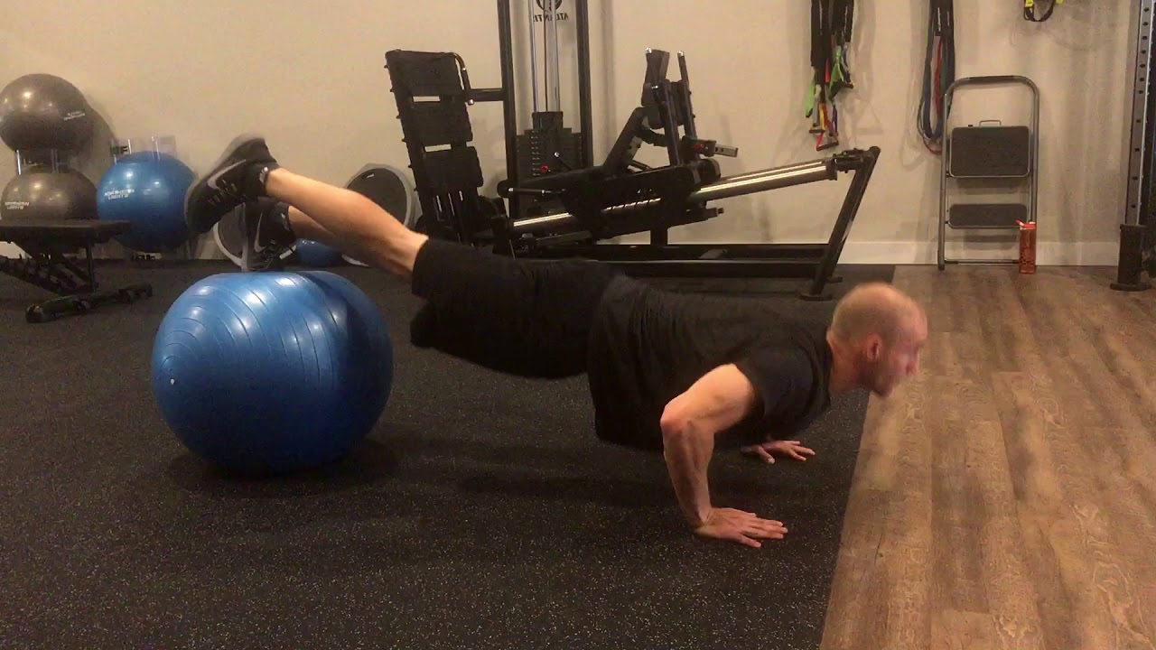 Beginning Single Leg Stability Ball Push Ups With Balance Board