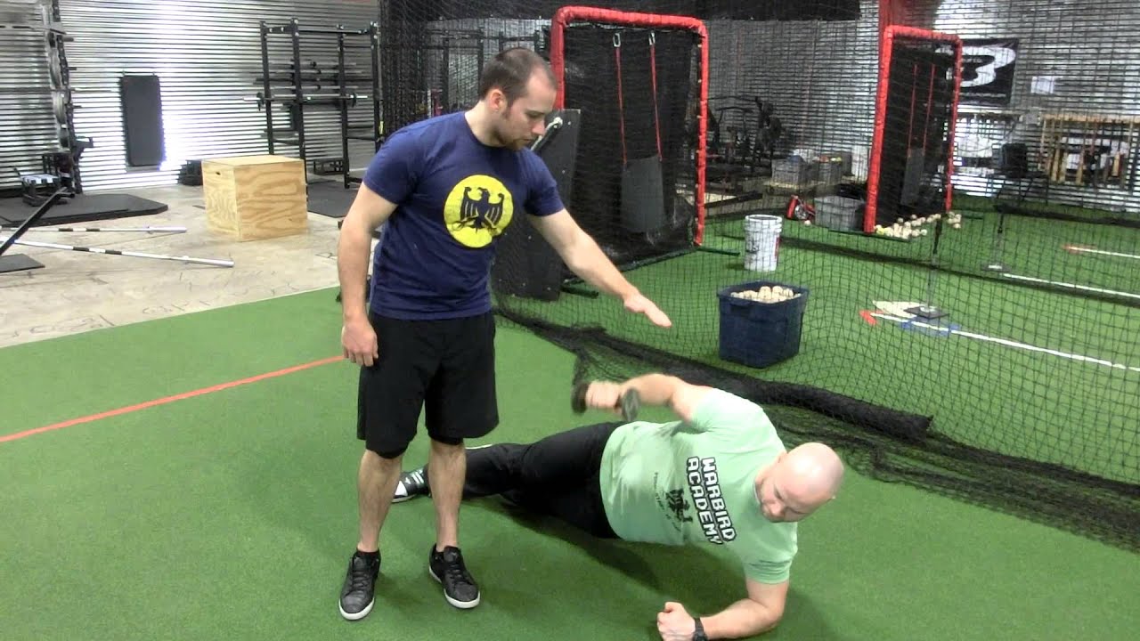 1. Lie on your side with a Bosu ball under your bottom elbow and your feet staggered on the ground.